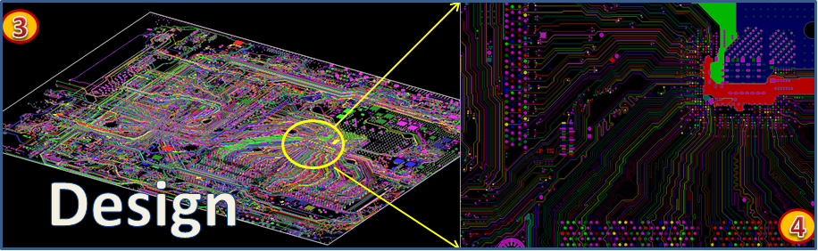 These systems are designed with CAD software (Fig. 3) When we zoom in part of the schematic, we will find many routing traces extended from the chip’s pins’ locations to the edge of the board… usually where the connectors are located. (Fig. 4)