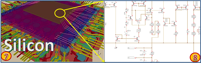 Moving upstream toward inside the chip, we will be marching into the silicon world where designs are mostly realized with MOSFETs. Logics are computed and bits/bytes are stored here. Signals are eventually buffered and amplified before sending out to pass through aforementioned vias, traces, capacitors, connectors and finally reach the end of path.. receiver.