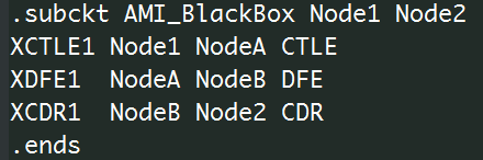 The paper presented by IBM demonstrate the intercommunication between unresolved .ami file and the AMI_Resolve API function. The “netlist” or “equation” is encrypted and embedded as part of the .ami file. In the IBIS spec, a table format is also supported in the .ami model_specific syntax yet it may be a hassle to produce and use. In practice, we prefer to point to an external file directly like below: