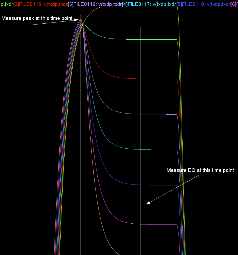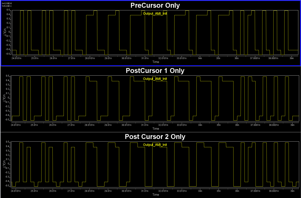For the de-emphasis part. We can use Spec. AMI’s what-if analysis to see how different pre/de-emphasis settings will cause difference responses: