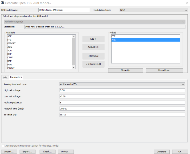 Now that we have input data and desired output for this particular set of parameters, next step is to explore whether SPISim’s existing spec. model is sufficient to meet the performance.