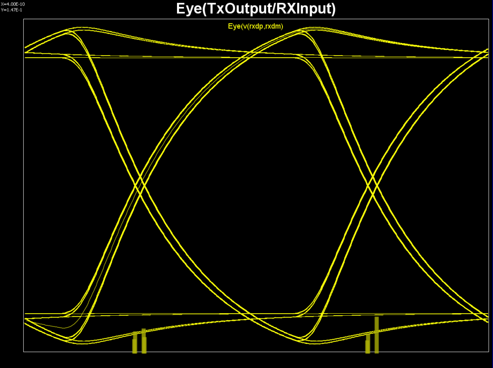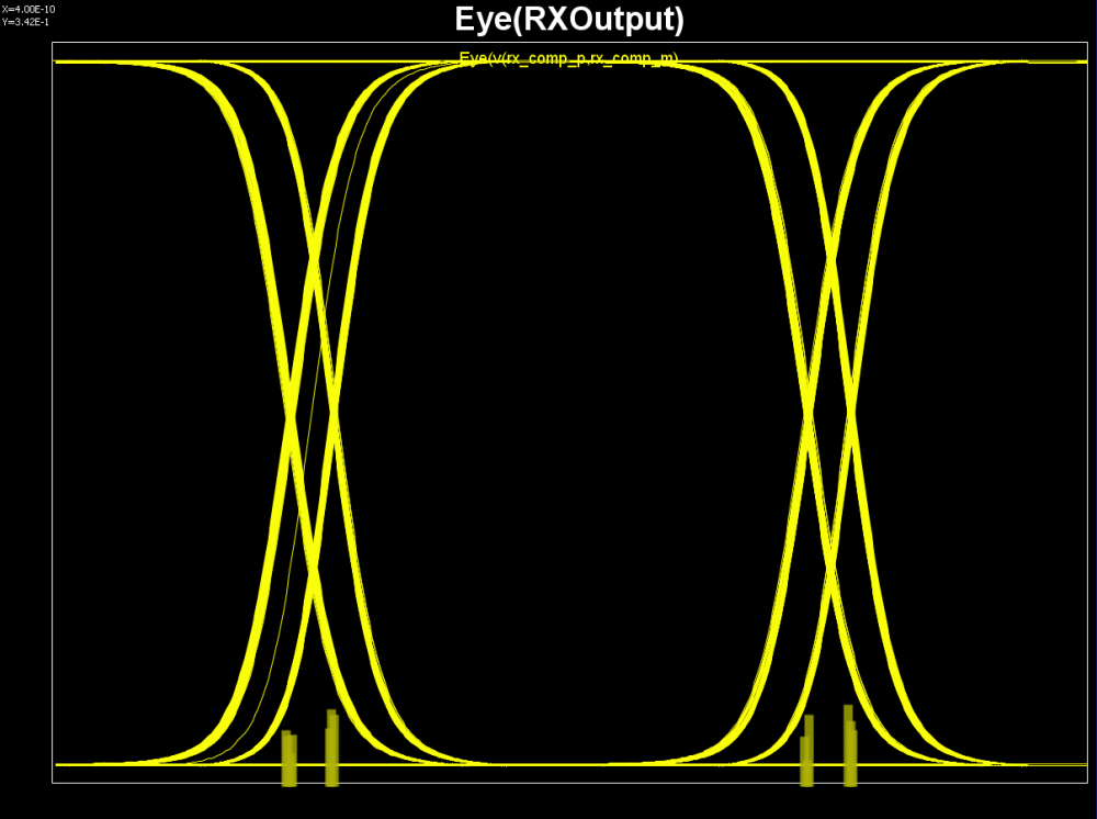 When we modify the test bench to connect Tx directly to Rx, i.e. bypass all the package and channel models, we get such input/output eyes: