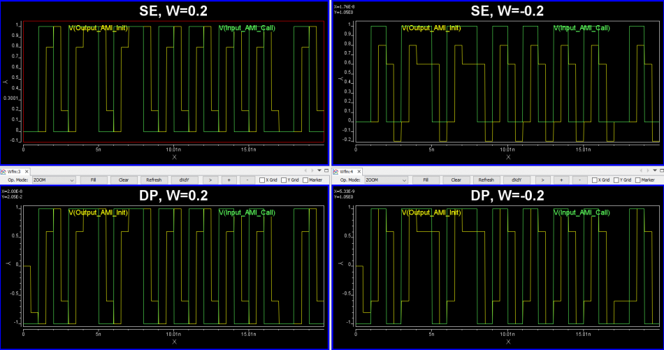 Finally it’s time to correlate the create CTLE AMI model against original EQ design or its behavioral model. Done properly, you should see signals being “recovered” from left to right below: