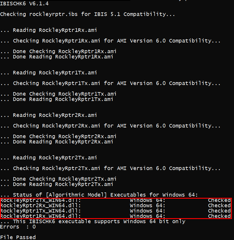 Just like traditional IBIS, the first step of model validation is to run it through golden checker. However, one needs to do so on different platforms: