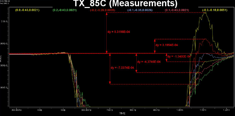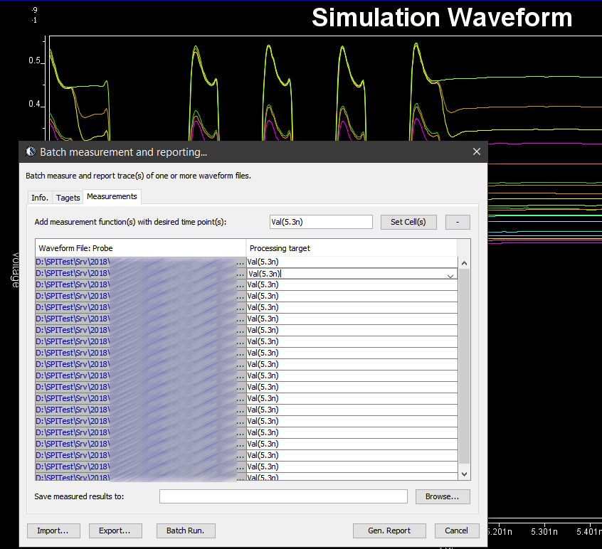 Various curves have been “lined-up” for easy post-processing. Using our VPro, we batch measured the value at the 5.3ns for different curves and created a table:Similarly, data collected from measurement needs to be quantified. This may be done manually and maybe labor intensive as the noise is usually there:
