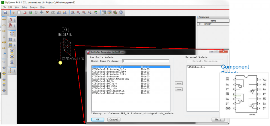 As mentioned earlier, an IBIS file or an IBIS model which has package model info. is just serving as a place holder. Package model’s effects or behaviors are not included in an IBIS model’s IV/VT/IT table data. Simulator has the responsibility to combine these two together… either when computing switching coefficients for lumped model version or “stamping” extra elements into nodal matrices for a distributed one. This also means that different EDA tool may have different methods, syntax or GUIs to introduce package model’s data: