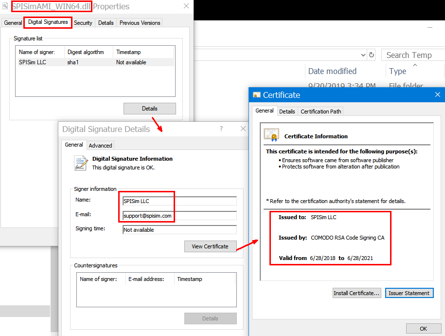 For a desktop or server based application, platform mechanism such as windows’ UAC will detect the signature during the initial installation process. For a web-based application, browser serves as a gatekeeper to detect or even block unsigned ones being run as they present more/frequent dangers. For a .dll file such as IBIS-AMI model, users need to right-click the file and check its properties by themselves unless the application which loads these dlls will check first before executing APIs within. At this time point, I am not aware of any EDA tool or simulator which does so. Nevertheless, code signing your software is like putting a seal of approval. It makes your product look more professional and also shows that as a software or model publisher, you care about customers or clients’ cyber security when your product is being used.