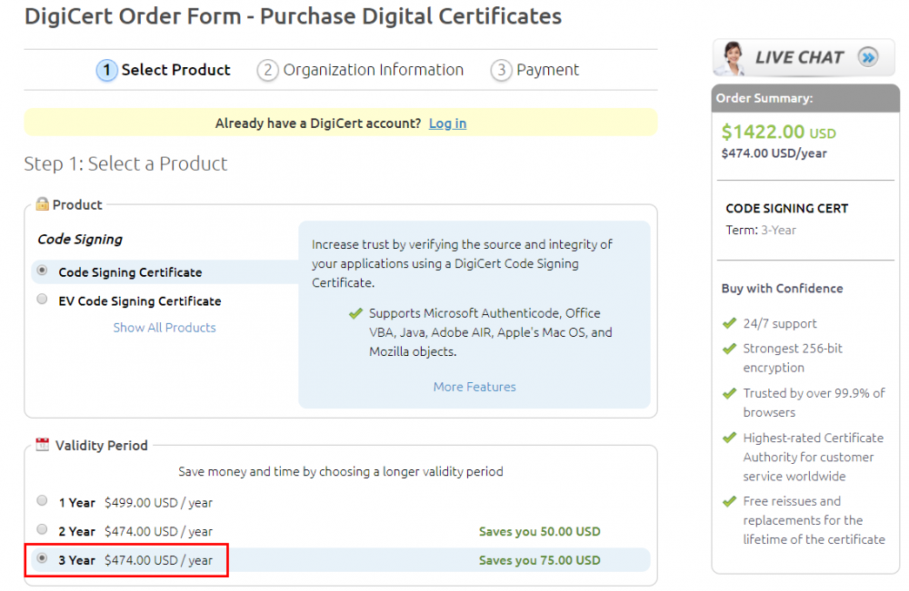 I am going to save you money here… Visit tucows.com, open an account and purchase certificate there. In stead of thousands, you pay less than two hundred for a three-year certificate!