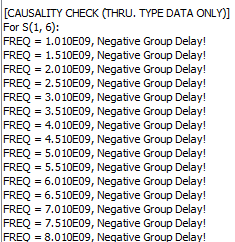 Causality check is the most important, yet more complicated one for a S-parameter. A necessary but non sufficient condition of being causal is that the even and odd function behavior of the real and imaginary data at DC should be satisfied. Adding being passive across full frequency range will make the condition sufficient. So a causality check essentially includes many of the other checks needed for a s-param.