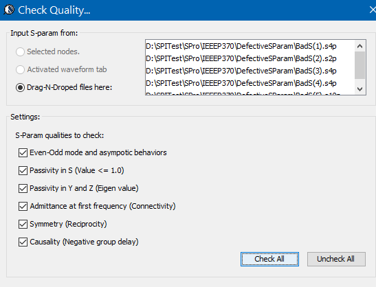Each of these S-parameter may have their own noise sources, bandwidth limitation or numerical inaccuracies. As a result, one has to check the quality of the S-parameter models to avoid numerical errors or instability (e.g. simulation convergence) of the analysis at the later stages.
