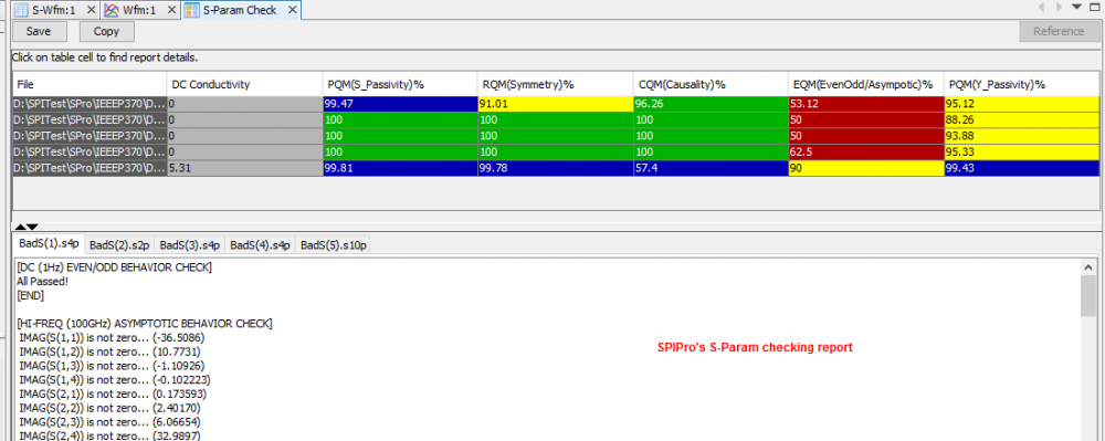 The produced summary should contain with color coded cell and various quality metric number, plus further details for each check of different data. This will certainly gives user better idea about the quality of their s-parameter files.