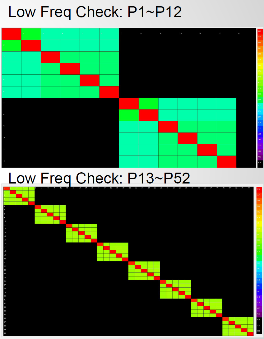 Texture representation can be useful when one needs to copy part of the calculated data for further analysis, such as taking effective inductance for power integrity simulation. Color coded matrix at the first and last frequencies are also useful for quickly checking connectivity or high inductance ports.