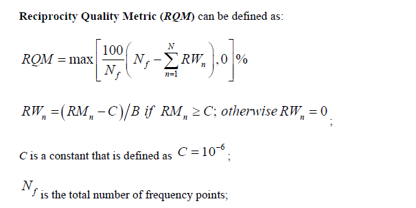 This needs to be done at least at the first (low) and last (high) frequency content. Regarding an overall evaluation, a Reciprocity Quality Metric (RQM) can be used: