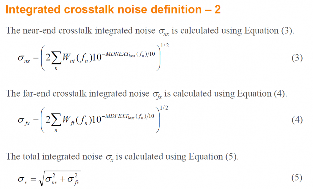 • INEXT/IFEXT: Integrated NEXT/FEXT noise