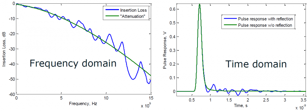 The picture above shows two common SERDES channel setups. While the one at the top has a direct connection between Tx and Rx, the bottom one has a “repeater” to cascade up stream and down stream channels together. This “cascading” can be repeated more than once so there maybe more than two channels involved. CTLE may sit inside the Rx of both set-ups or the middle “ReDriver” in the bottom one. In either case, the S-parameter block represents a generalized channel. It may contain passive elements such as package, transmission lines, vias or connectors etc. A characteristic of such channel is that it presents different losses across spectrum, i.e. dispersion.