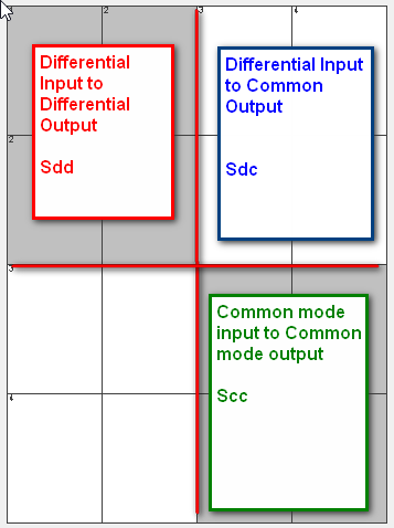 The notation above is for a “single-ended” s-param. To describe a differential channel, a “differential-mode” or “mixed-mode” conversion need to be applied. The forming  of “differential” relationship is essentially to subtract certain element in the S-param’s matrix which represents the “return” path or return channel. The resulting S-parameter can thus be used to describe relationship between “modes” such as differential mode or common mode: