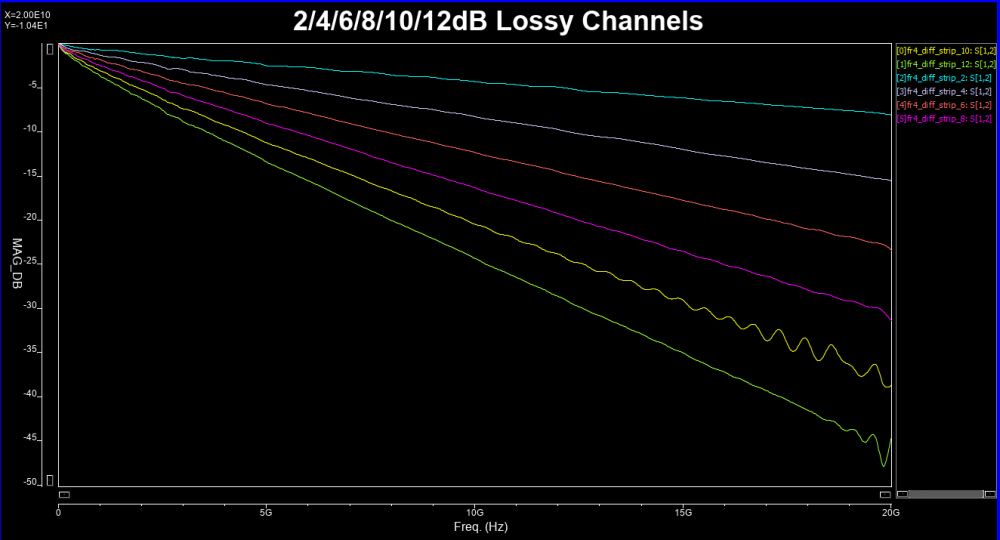 For example, if we plot these channel’s differential input to differential output, we may see their frequency domain (FD) loss as shown above.