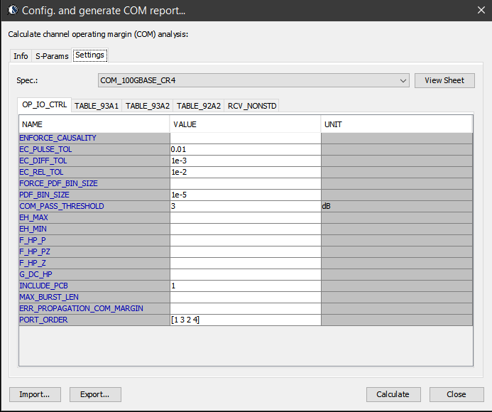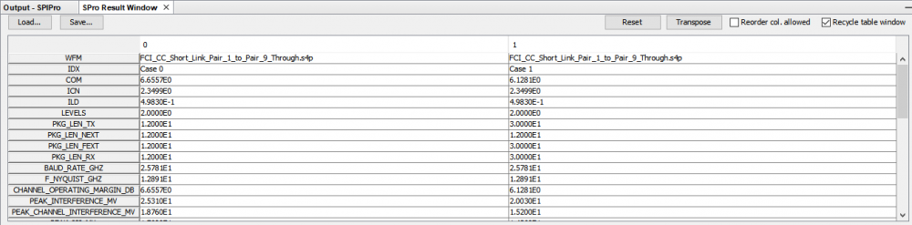 S-param check and parameters defined in COM methodologies has profound impact. It not only sets an example for other interfaces (e.g. USB-C, discussed below) to check their interconnect model, but also provides a meaningful correlation between different S-param’s deviation toward its final eye impact. Details about these calculation can be found in 802.3bj spec.. SPISim’s SPro integrated COM as part of the S-param reporting flow as shown in various plots above and screen shots below:
