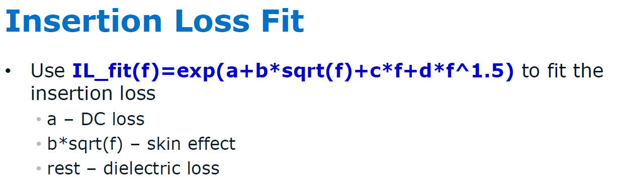 However, due to impedance mismatch and multiple reflections, such linear dependency may not be possible. Thus “ripples” may exist which in terms introduce the time domain noise and causes degraded final eye height/width. A “fitted-curve” (ILFit, up to half of bandwidth, i.e. Nyquist rate) may be introduced to approximate such insertion loss. Such smoothed curve can be viewed as channel without mutli-reflection and is thus a “best-case” scenario.