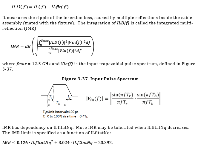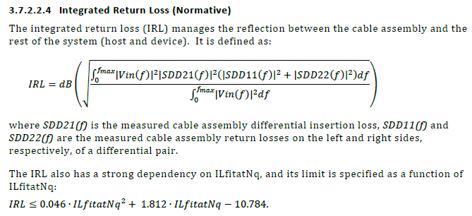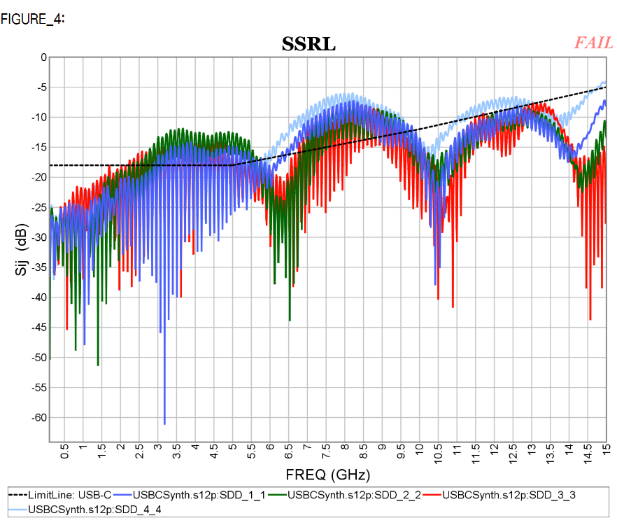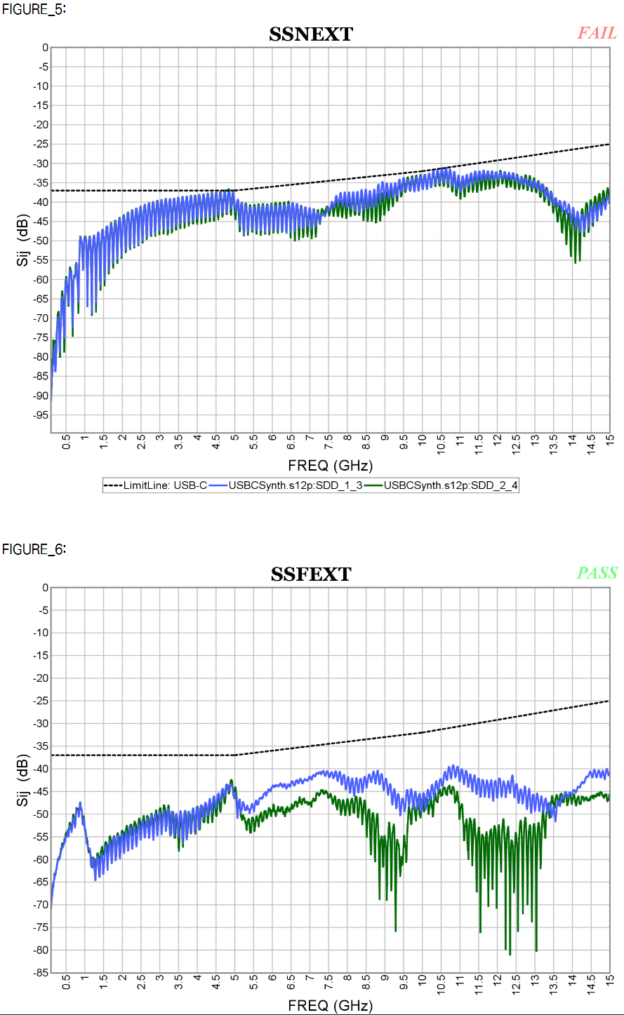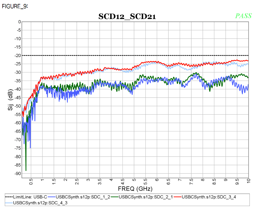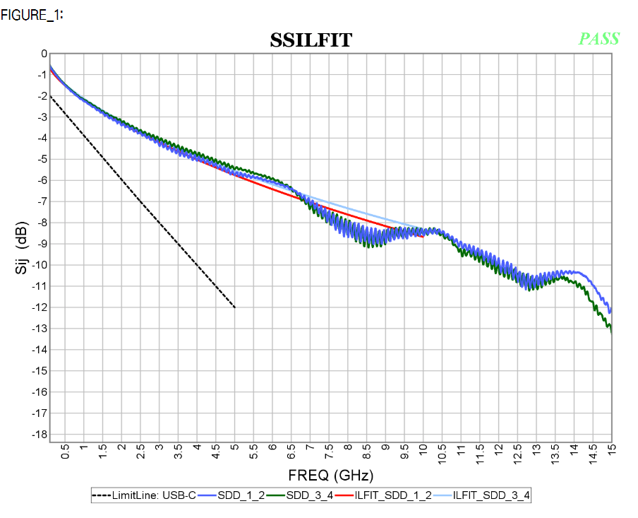 However, the main check (ILD/IMR etc) in USB-C is more or less similar to those used in COM methodology. Nevertheless, there are still minor difference in terms of implementation such as how insertion loss should be fitted and weighted…. as discussed below. In addition, since there are different pairs of traces (e.g. SS, D+/D- etc) in the cable/connector, dedicated checks between signals are also included. Essentially they are calculation applied toward specific S-parameter matrix elements corresponding to the incidental/reflective behaviors between those traces/ports.