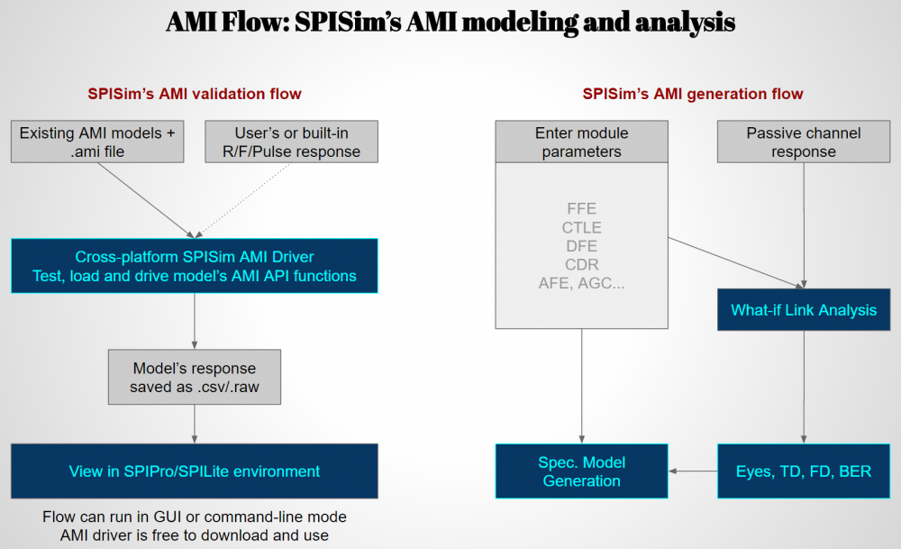 On Jan/16/17, SPISim launched SPISimAMI, an IBIS-AMI testing, spec. modeling and validation flow integrated into BPro and XPro modules. See [AMI product pages] for more details.