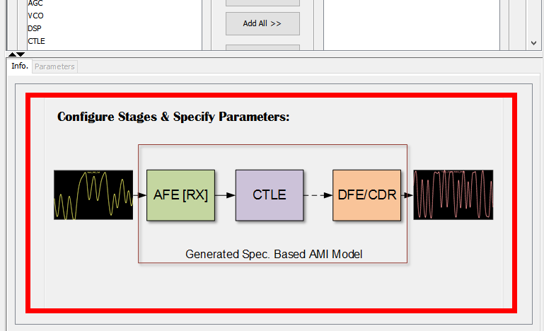 - Rx equalization: This is represented by IBIS-AMI model for RX