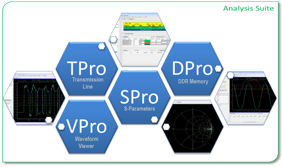 Analysis Suite: SPISim’s SI/PI analysis capabilities w/ waveform viewer package.