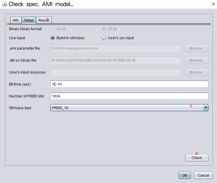 For SPISim_AMI, the IBIS-AMI model generation tool, the most probable failing spot is when user trying to "Check" the generated IBIS-AMI model using user provided .csv input waveform.