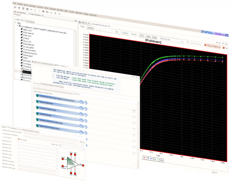 - Full IBIS model generation flow: from Spice to IBIS and also IBIS to Spice.