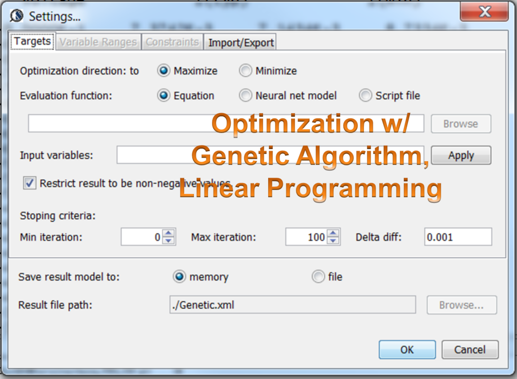 - Optimization using linear, nonlinear or genetic algorithm methods;