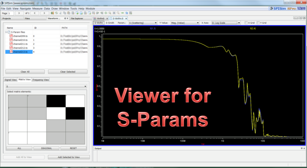 - Dedicated/enhanced waveform viewer targeted for S-parameters files: