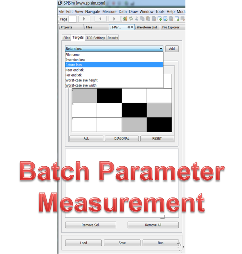 - For batch S-Parameter processing/reporting for insertion/return losses, crosstalks and TD eyes, Channel operating margin (COM) etc;