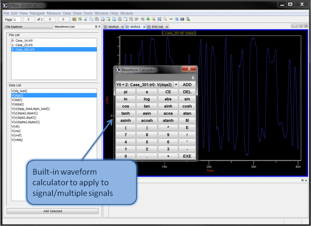 - Waveform calculator to compute or batch process one or more set of waveforms;