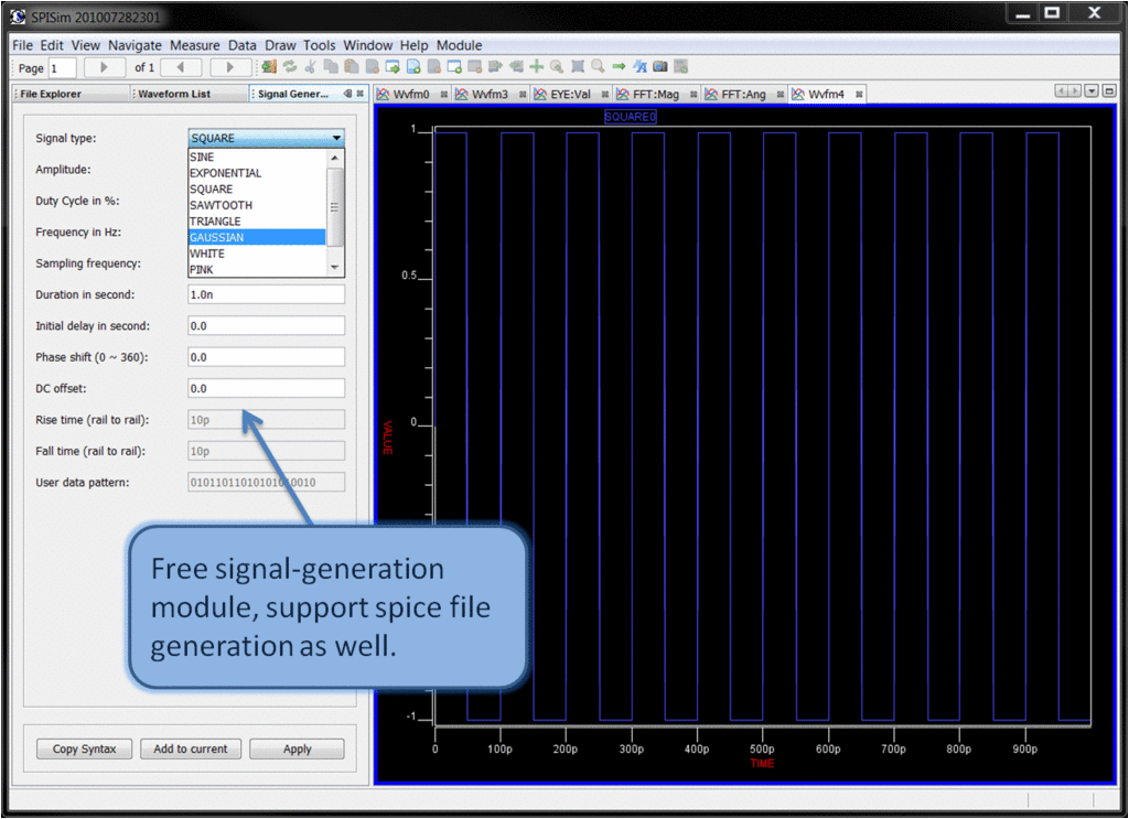 - For various signal generation and save as Spice’s PWL source w/ included signal generator module.