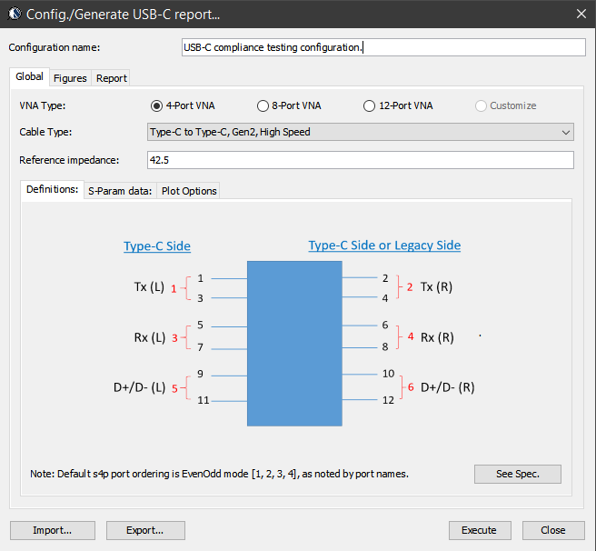 USB Type C implementation forum has both signal and power spec. for this V3.1 spec. On the signal part, parameters such as ILFIT, ILD, NEXT, FEXT etc have been defined along with the spec. Their calculations are very similar to what’s defined in COM yet the detailed fitting algorithm is somewhat different. In addition, there are differentiation for high-speed/low-speed/legacy interconnect etc and default 4-port/8-port/12-port VNA measurements have been assumed.