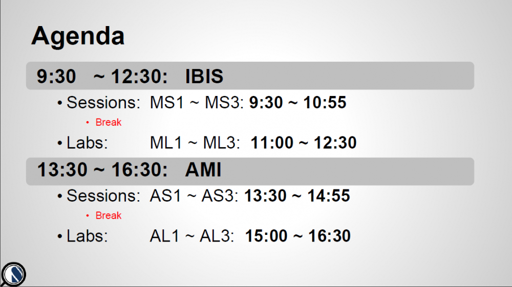 - 8 hours: One day sessions for combined IBIS and IBIS-AMI